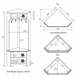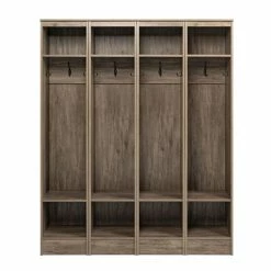 Prepac 4-Hook Entryway Coat Rack/Hall Tree With 2-Door Storage Bench, Brown