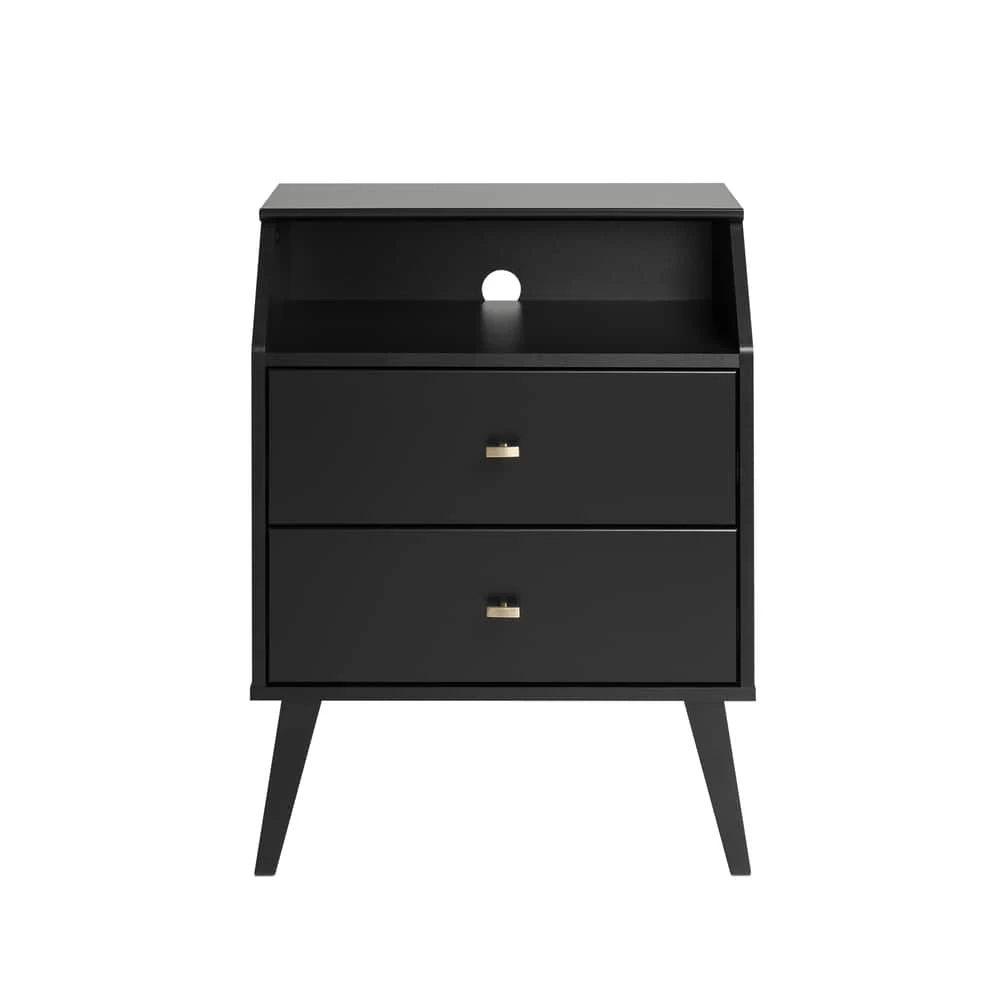 - Prepac 2-Drawer Milo Night Stand with Angled Top adds a retro stylish design with the functionality of extra storage and organization to any bedroom
