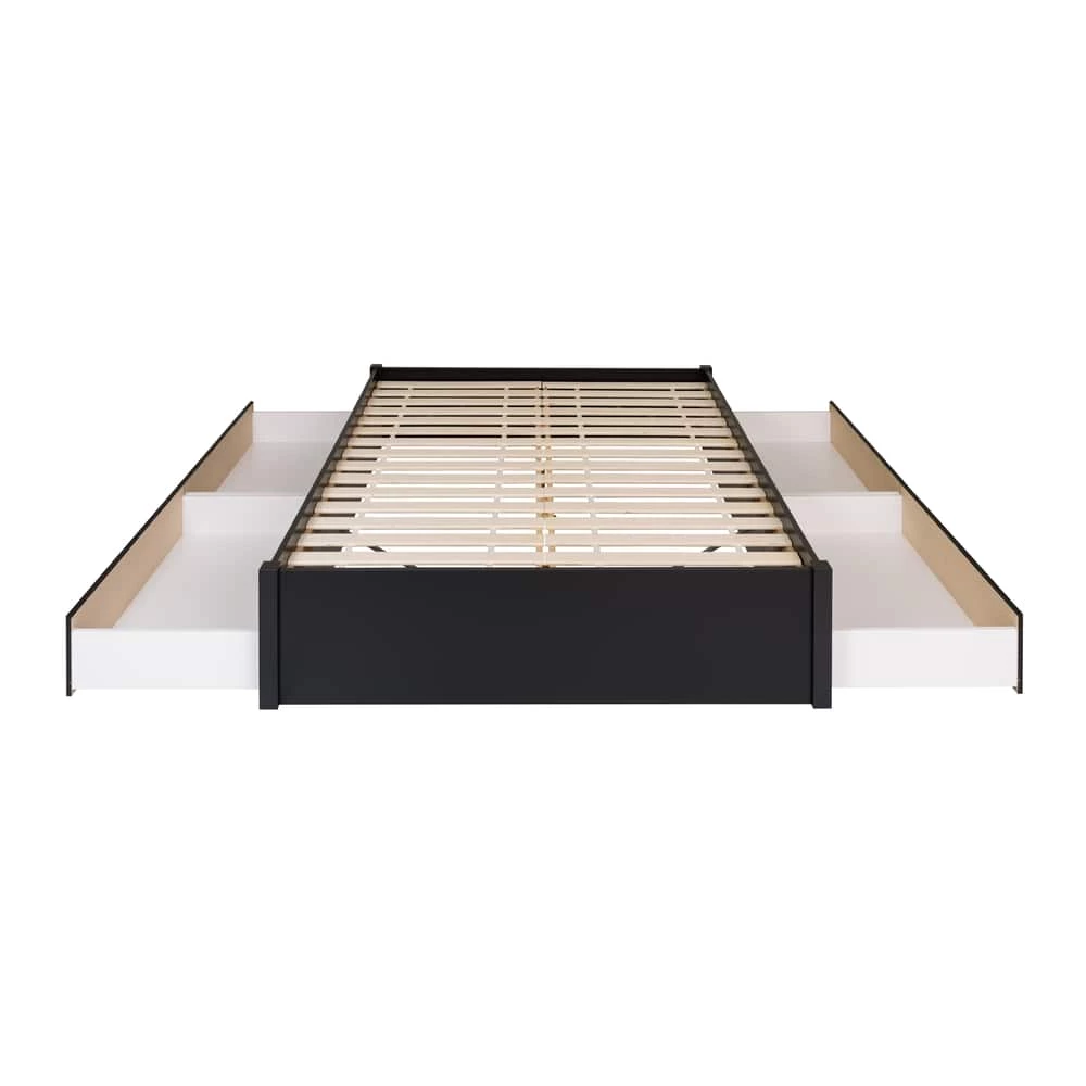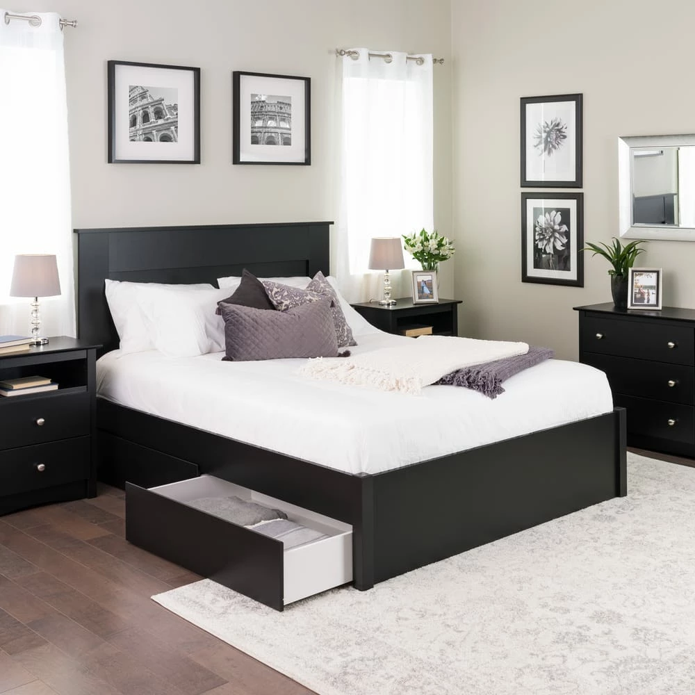 - Prepac 4-Drawer 4-Post Platform Queen Bed adds storage, organization, and style to any bedroom