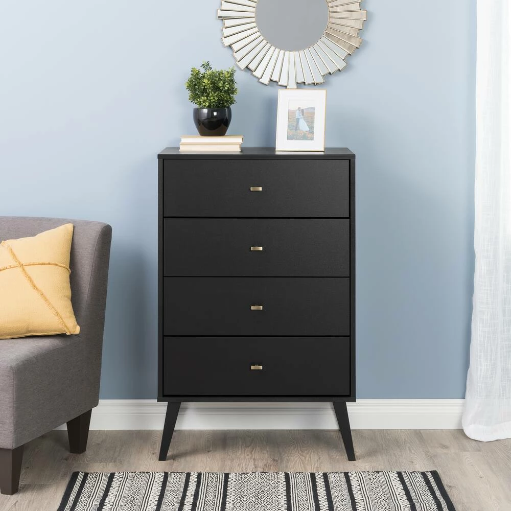 - Prepac 4-Drawer Dresser adds a retro stylish design with the functionality of extra storage and organization to any bedroom