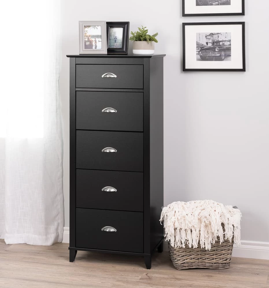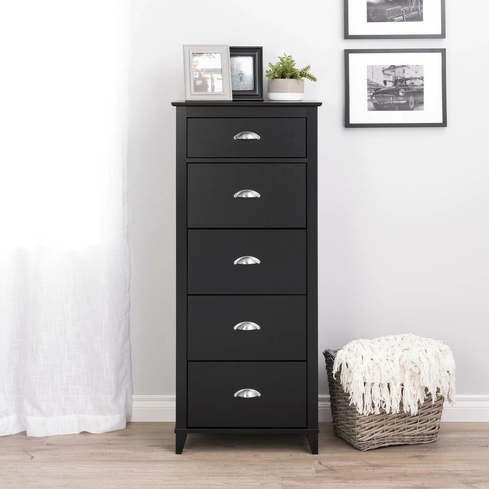 - Prepac 5-Drawer Yaletown Tall Chest adds a functional storage and organization solution to any bedroom
