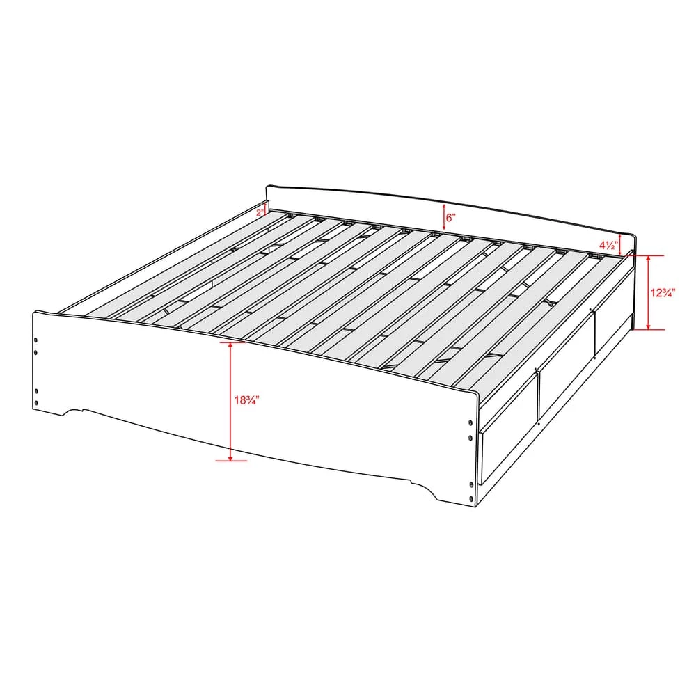 - Prepac 6-Drawer Mate’s Platform Storage King Bed adds storage, organization, and style to any bedroom