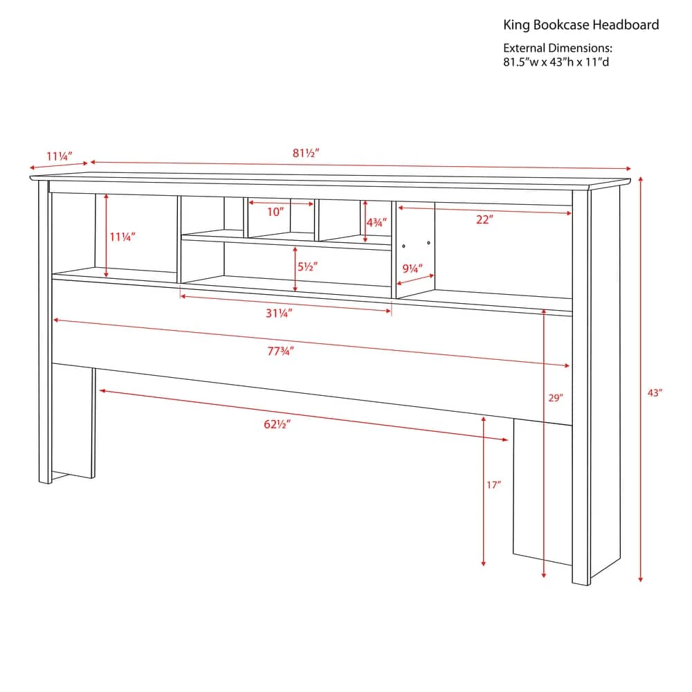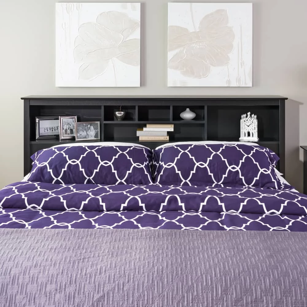 - Prepac Bookcase King Headboard adds functional, small space bedside storage to organize any bedroom