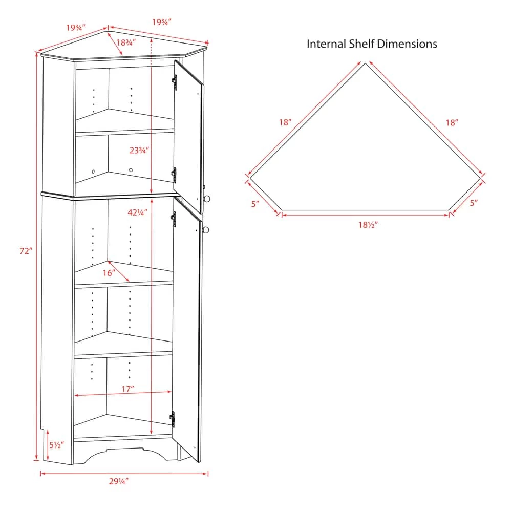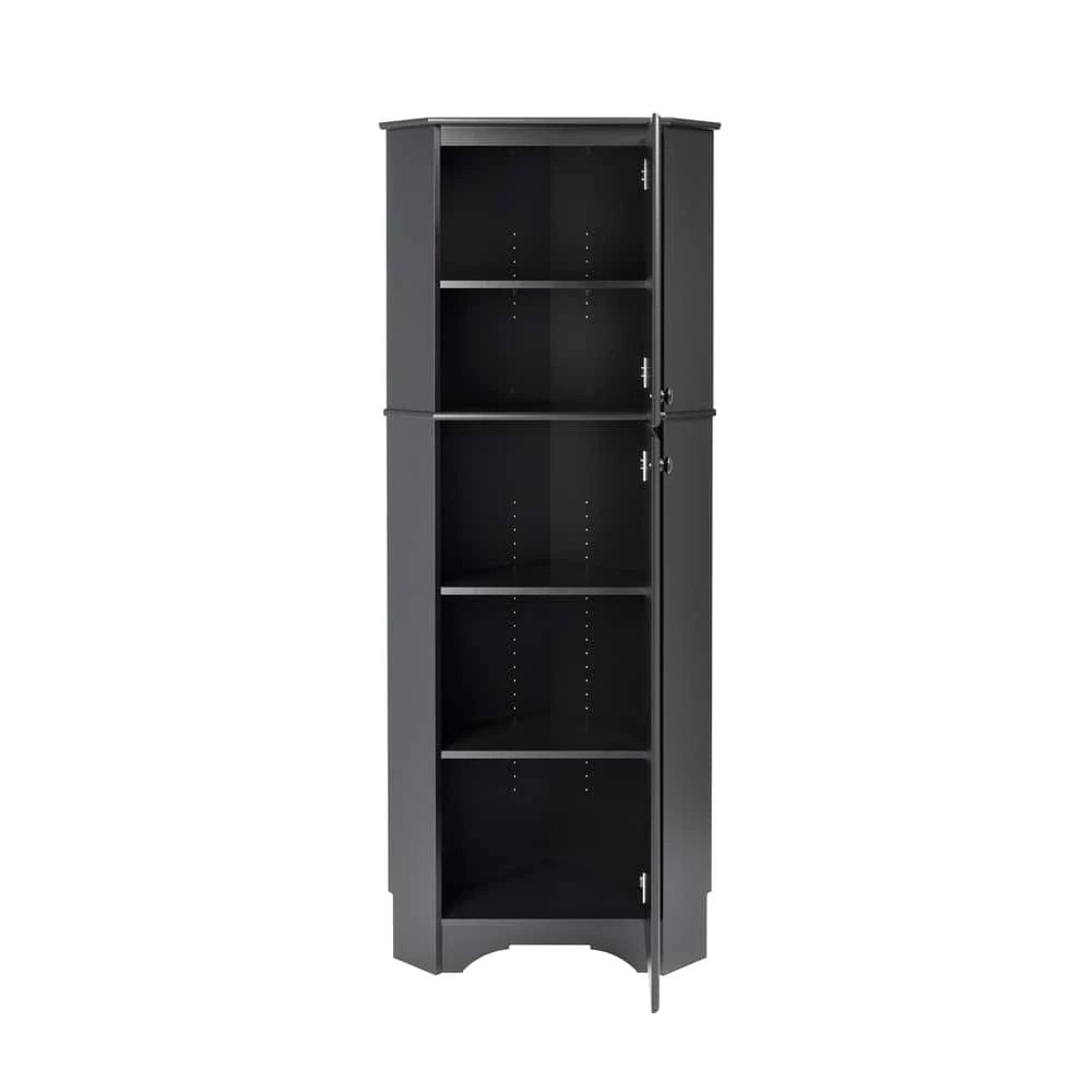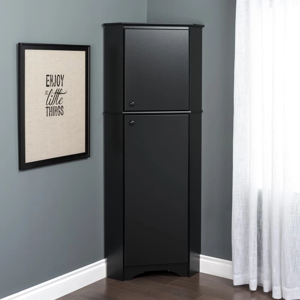- Prepac 2-Door Elite Tall Corner Storage Cabinet is a stylish, modern, multipurpose storage solution that is the perfect addition to any kitchen, entryway, or laundry room