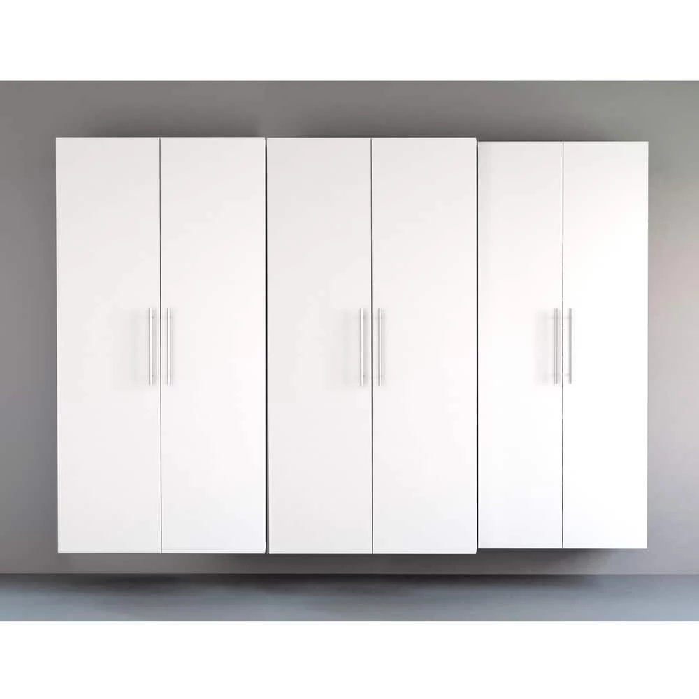 - Prepac White HangUps Storage Set L is a stylish, modern, multipurpose storage solution that is the perfect addition to any garage, workshop, office, or laundry room