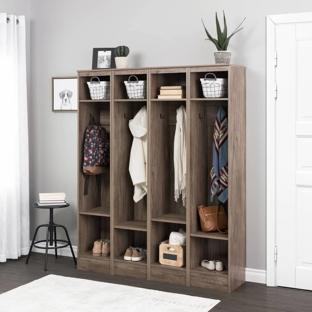 - Prepac Narrow Entryway Organizer allows for extra storage in any foyer, family room, recreation room, or mudroom