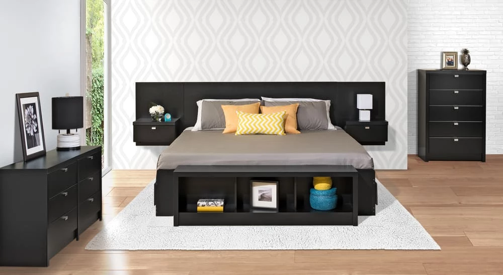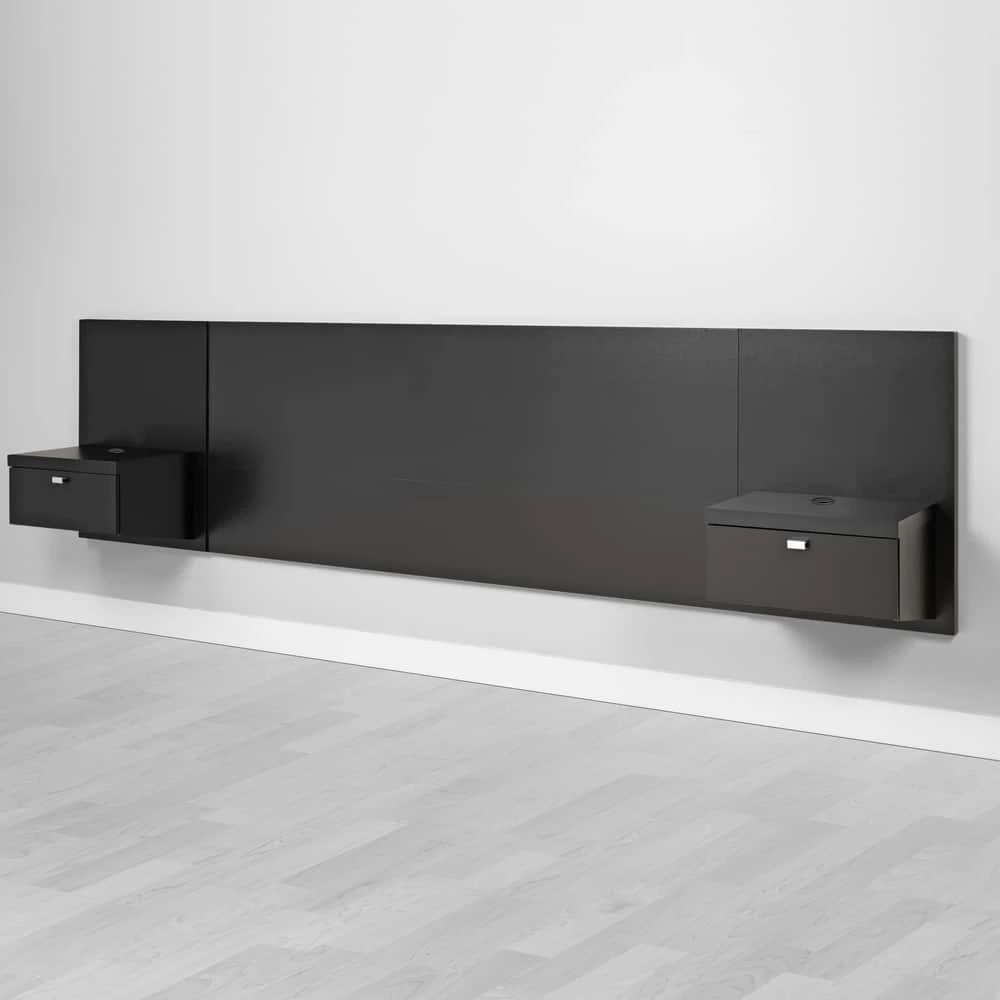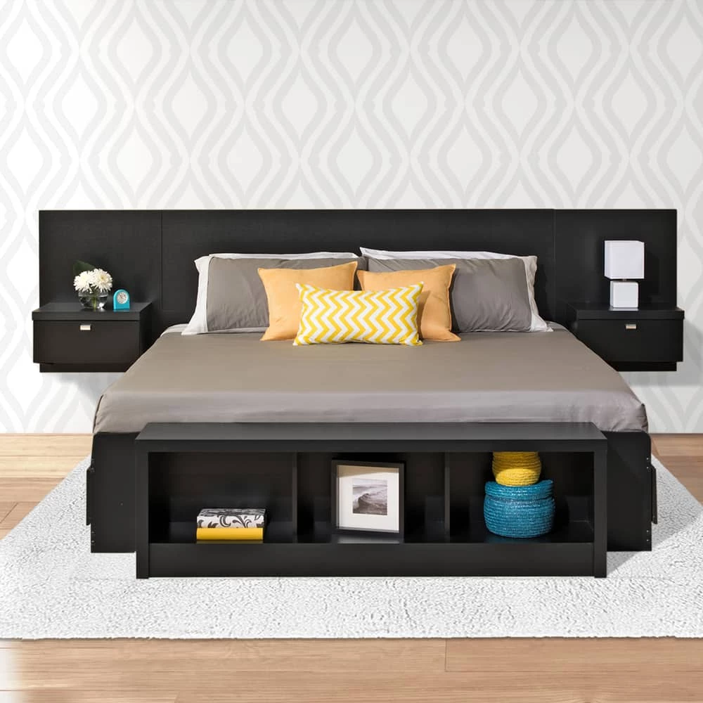 - Prepac Series 9 Designer King Floating Headboard with Nightstands is a contemporary, space saving addition for any bedroom