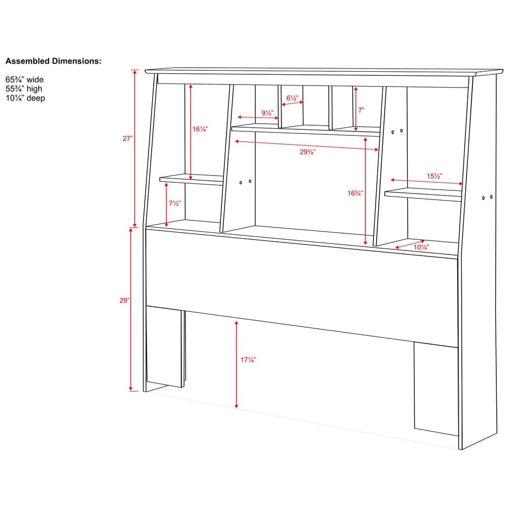 - Prepac Tall Slant-Back Bookcase Full/Queen Headboard adds functional, small space bedside storage to organize any bedroom