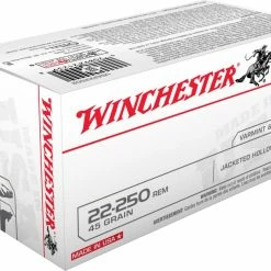 Winchester USA 22 250 Caliber Centerfire High-Velocity FMJ Rifle Ammunition, 40-pk