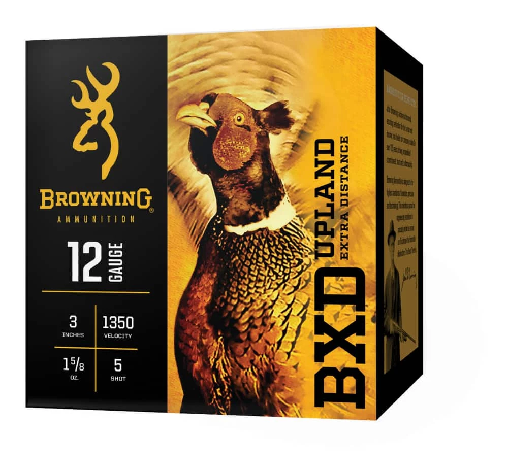 - Browning BXD Upland 12-Gauge #5 Shotgun Ammunition helps you gain extra distance on your shot